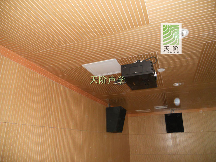 此項(xiàng)目為翻新工程使用了700平方的槽木吸音板,400平方的孔木吸引板,1100平方的隔音棉