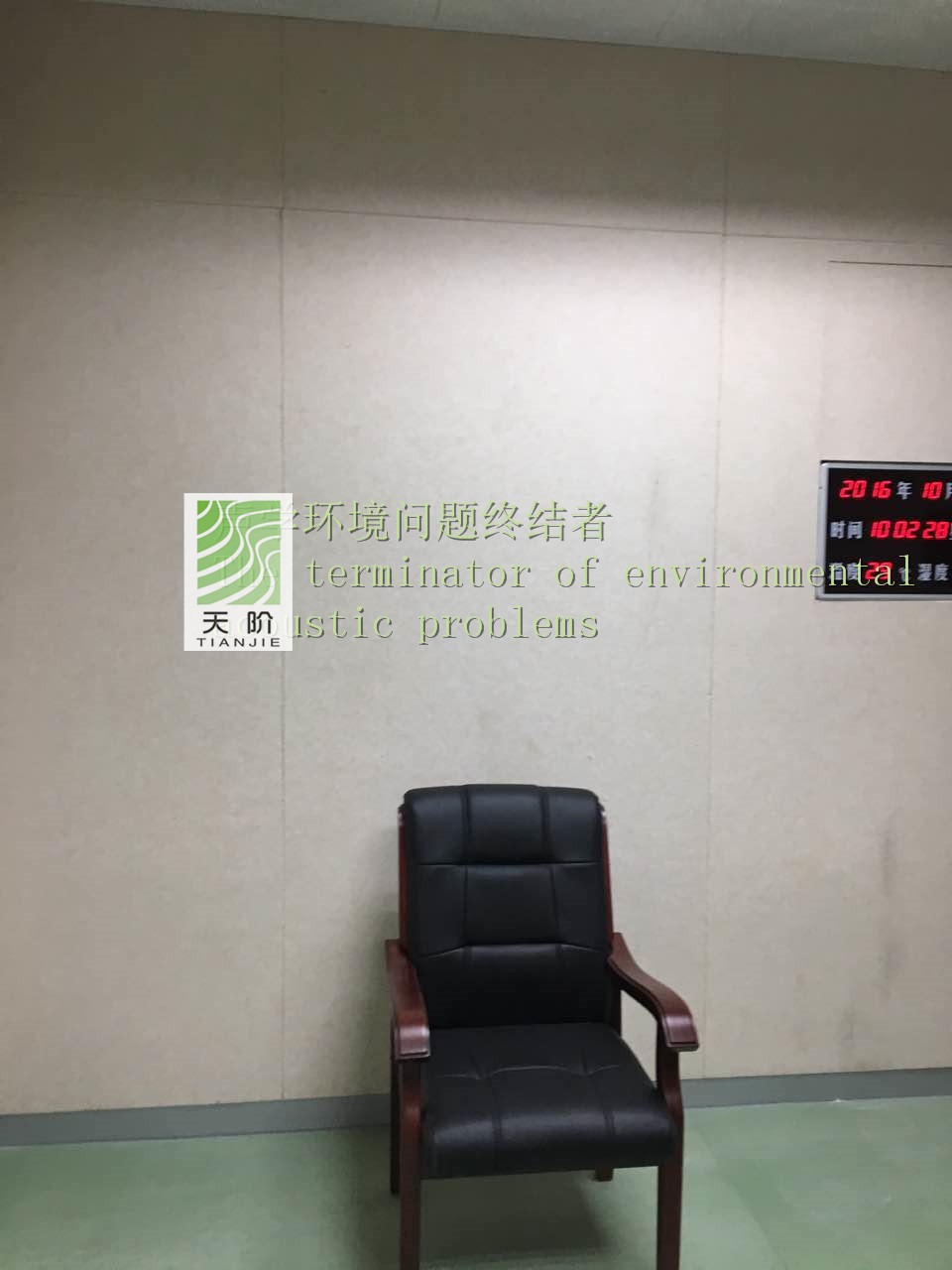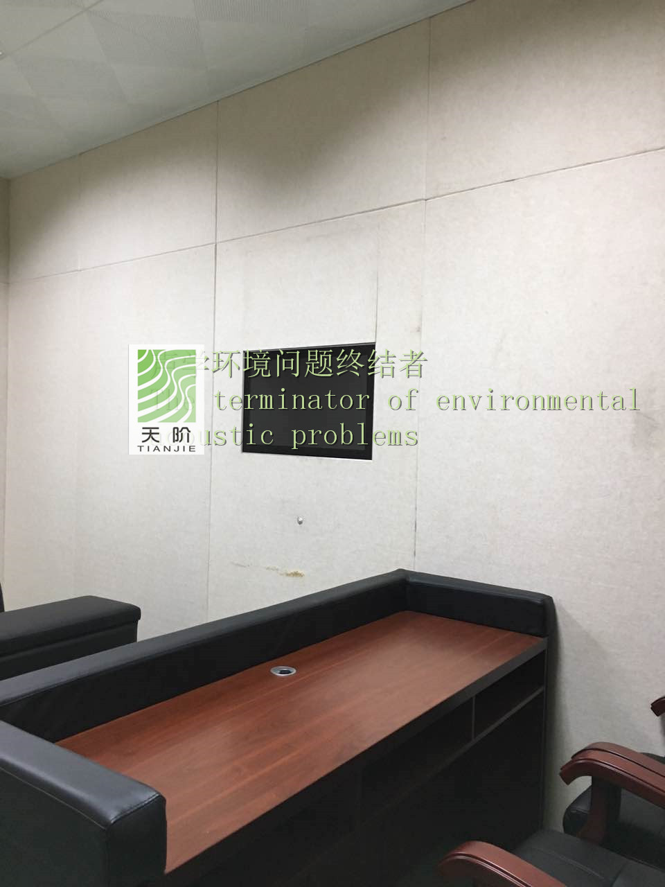 聚酯纖維吸音板具有高密度、環保、防火、吸聲頻帶寬、裝飾性強、施工簡單、易于切割、無粉塵污染等性能,飾面顏色及材料選擇性廣、能很好地滿足客戶多樣化的聲學及裝飾需求。此次惠州公安局采用天階牌聚酯纖維吸音板作為審訊室的減噪處理。