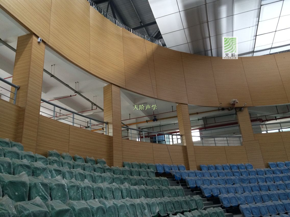 此項目采用的材料有:B1級防火吸音板8000方,飾面帶來了視覺上的美感,吸音板在聲學方面提倡了很好的聲學環境。