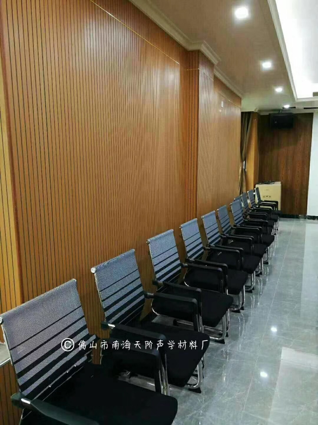 c.輕鋼龍骨,在高層較高或防火要求等級較高的時候,可能不允許施工木龍骨的情況下,一般采用爆炸螺絲吧小段的木墊片固定在輕鋼龍骨上,然后將木絲吸音板固定在木皮上即可。