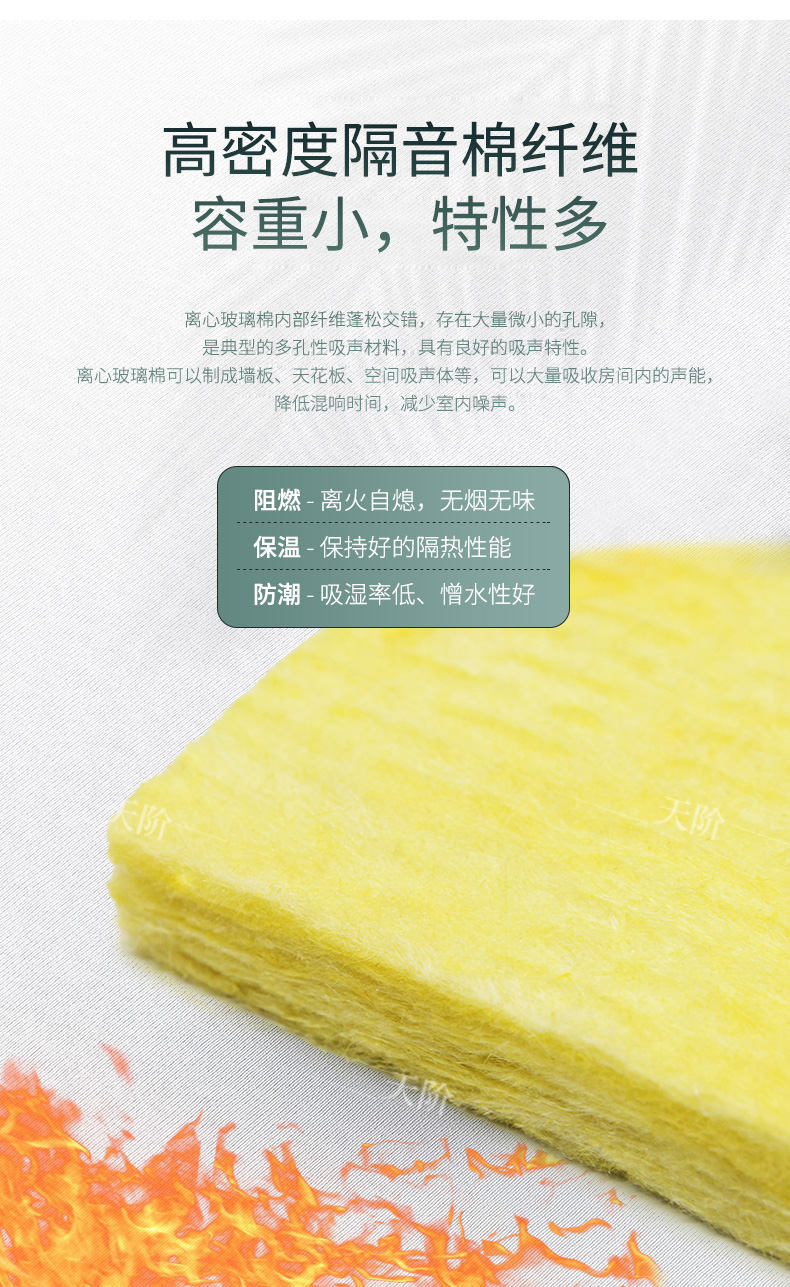 離心玻璃棉是離心棉經過固化處理后制成的具有一定強度的板材制品,無論在高溫或低溫環境中均能保持良好的保溫隔熱性能,主要用于高級建筑的內墻隔間,天花吊頂,鐵皮風管或風箱內壁的保溫,機房吸聲減噪,金屬天棚流汗控制等,有廣闊的應用前景。
