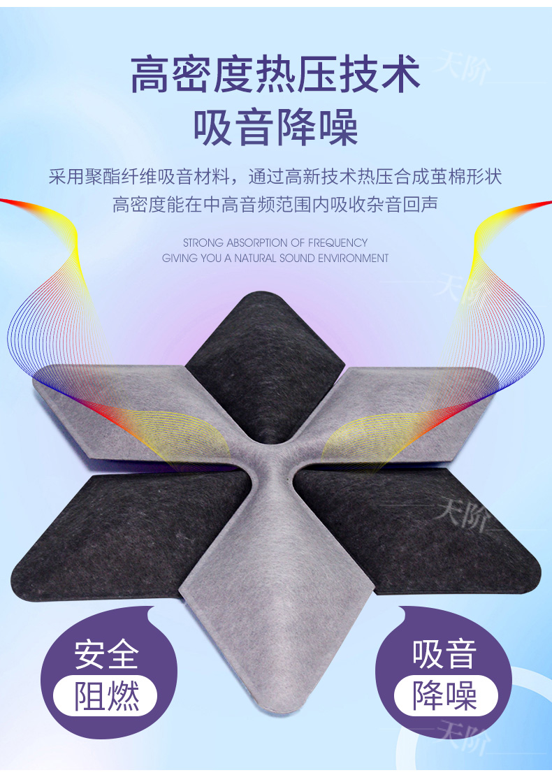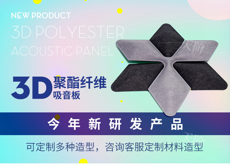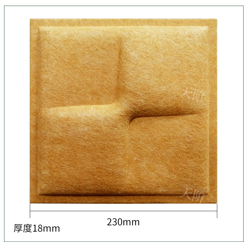 3D聚酯纖維吸音板是今年新研發產品,采用的是綠色環保高新技術熱壓合成繭棉形狀的纖維板材,具有環保,防火,吸音,3D效果裝飾性更立體,易安裝等功能。