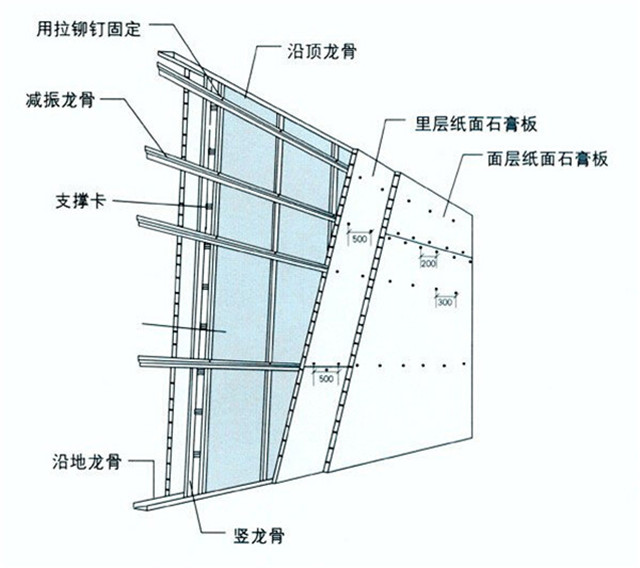2. 墻壁處理: 隔音材質:隔聲毯、厚窗簾、吸音棉、壁紙 只是通過吸音棉和石膏板做一層隔墻,效果不好。因為這還是用吸音來代替隔音,好的吸音不隔音,好的隔音不吸音。在基礎墻面上,最最好讓墻面有些凹凸,增加聲音反射面,弱化聲區,使用隔聲毯的隔音達到了20dB,這種材料具有非常好的寬頻隔聲特性和高阻尼性,可以有效隔絕各類空氣傳聲,用它與石膏板、吸音棉組合而成的隔聲墻的隔聲效果就非常好。 不要以為釘木板可以吸音,木板表面是平的,與原來的墻無異。木板本身很硬,也與墻無異,它不會有好的吸音的作用。