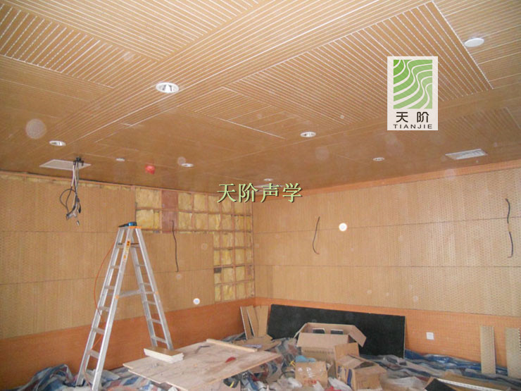 此項(xiàng)目為翻新工程使用了700平方的槽木吸音板,400平方的孔木吸引板,1100平方的隔音棉