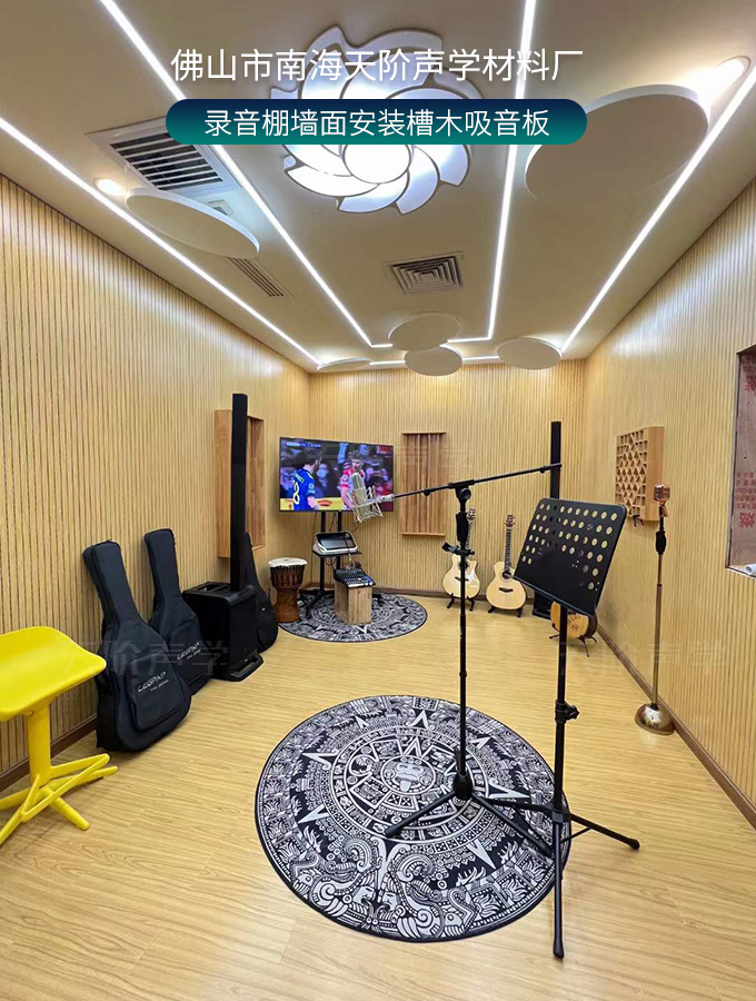錄音棚墻面安裝槽木吸音板