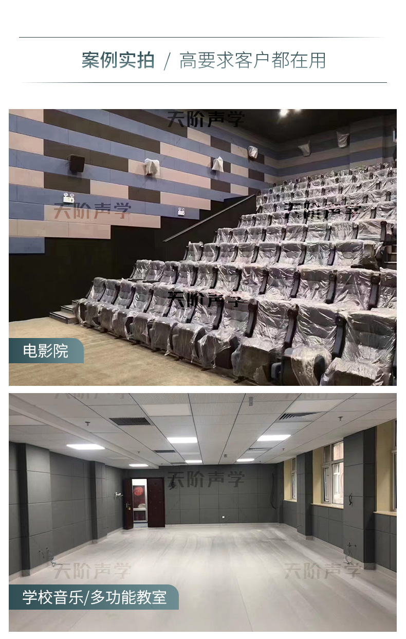 適用場所:詢問室、會議室、報告廳、學校教室、演播室、錄音室、樂隊、練習室、室內體育場、禮堂等對聲學要求高的場所。