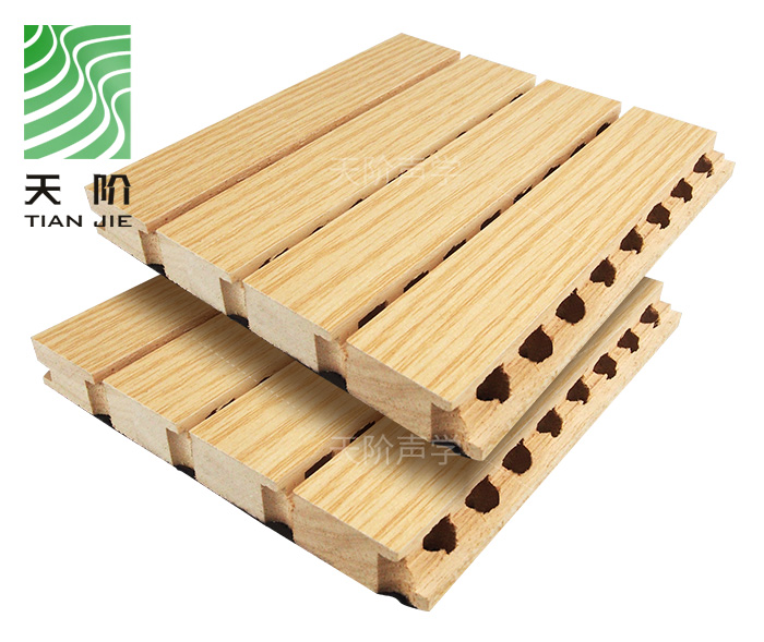 天階聲學(xué)材料廠生產(chǎn)的此種天階槽木吸音板由一系列彼此等槽距條組成,通過對(duì)槽背面孔徑的大小,深淺,正面槽的寬度,深度以及穿孔率進(jìn)行嚴(yán)格的核算,從而在不同的頻率上取得理想的吸聲效果,有效控制聲波的反射和擴(kuò)散,消散雜波和噪音,令室骨有合理的混響時(shí)間,達(dá)到締造音質(zhì)的吸音效果。