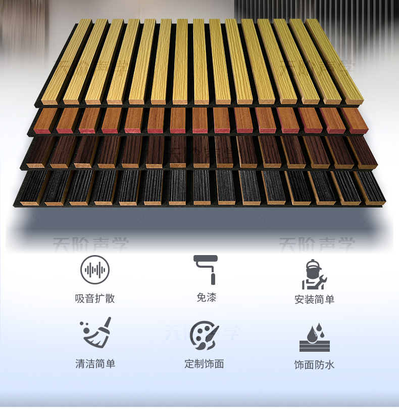 適用于多種場所:多種飾面,滿足不同風格家裝,店面裝修,辦公室,建筑墻面,廣告牌制作,音樂廳,歌劇院,錄音室等(內外墻,室內天花)。
